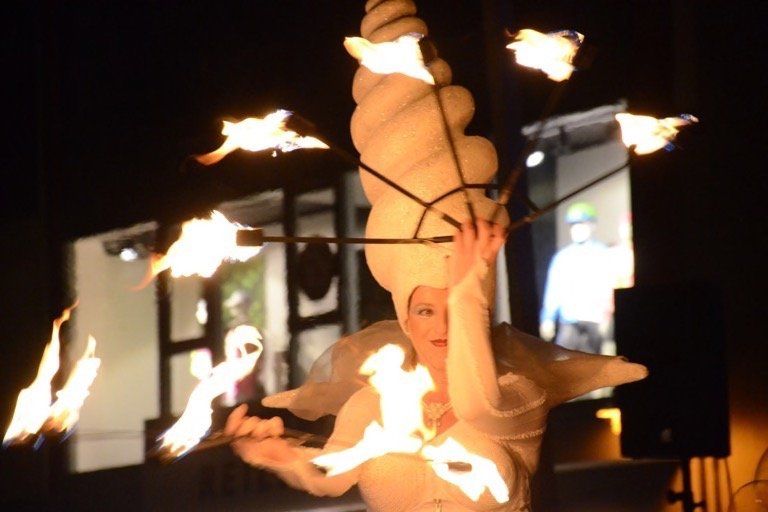 In der Farbe des Feuers und in der Bewegung des Tanzes erzählen zwei märchenhafte Flügelwesen eine leise Geschichte ohne Worte. Wie aus einer anderen Welt und voller Fantasie schweben, tanzen und schwanken die zwei Traumgestalten über den Köpfen ihres Publikums und erwecken deren Träume und Gefühle. Langbeinig, filigran und federleicht zaubern sie feurige Gesten der Poesie, die leise Töne in unsere laute Welt zeichnen.